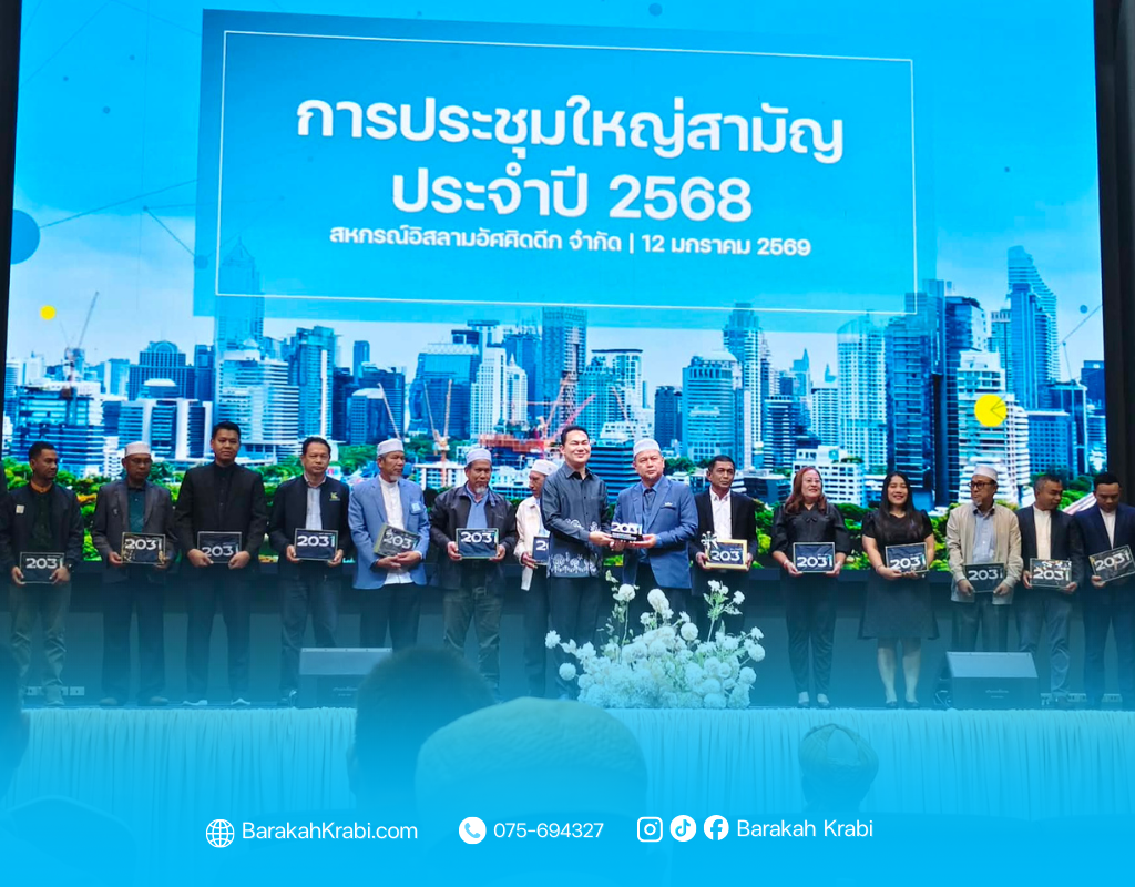 วันจันทร์ที่ 12 มกราคม 2569 นายอบี ยะลา รองประธานเครือข่ายสหกรณ์อิสลามแห่งประเทศไทย และรองประธานกรรมการสหกรณ์อิสลามบารอกะฮฺ จำกัด เข้าร่วมประชุมใหญ่สามัญประจำปี 2568 สหกรณ์อิสลามอัศศิดดีก จำกัด ณ โรงเเรม เดอะ ซิกเนเจอร์ โฮเต็ล แอร์พอร์ต
